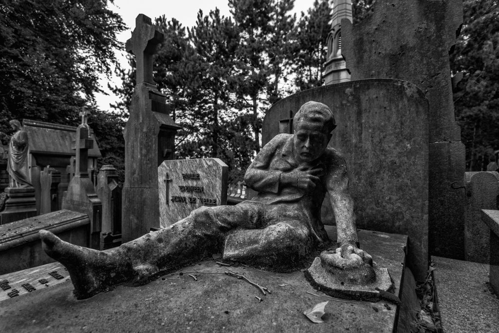 Campo Santo is een indrukwekkende begraafplaats te Sint-Amandsberg bij Gent. Het grote kerkhof staat vol met oude graven en opvallende grafstenen. Het is tevens ook de laatste rustplaats voor vele bekende personen waaronder striptekenaar Marc Sleen, muzikant Luc de Vos en kunstkenner Jan Hoet. De locatie en het licht vroegen gewoon om een zwart-wit bewerking, iets wat ik al een hele tijd niet meer gedaan had.